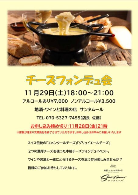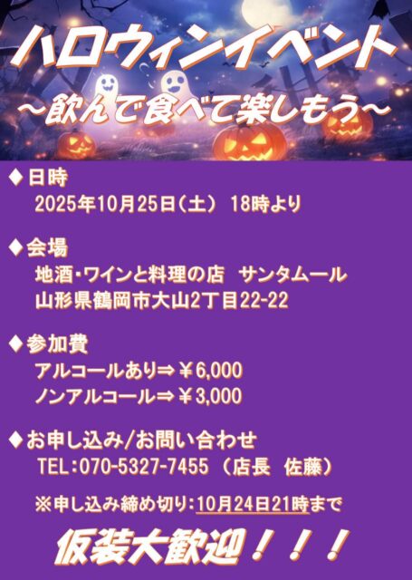 【お知らせ】美味なるボージョレーと地酒とんめごっつぉときどきコスプレって事でウルトラお得なイベント開催いたします。 日時 10/25(土) 18:00〜会費 6,000円(ノンアルの方は3,000円)ボージョレー解禁に先 […]